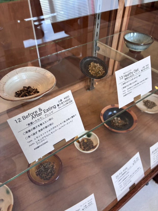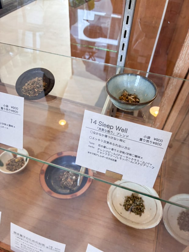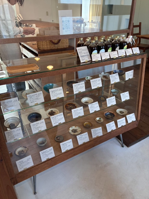 店内には約22種類のハーブティーが並んでいます。