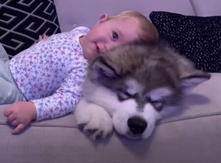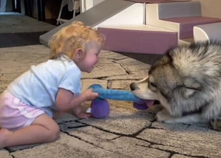 愛犬と赤ちゃんが一緒に成長する姿を