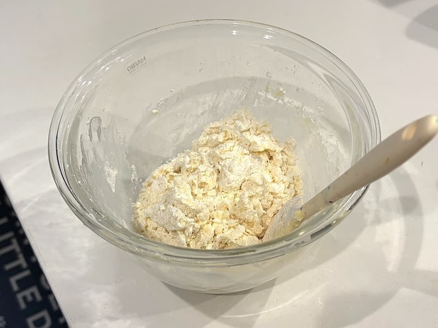 その後、ホットケーキミックスと牛乳を混ぜ、まとめていきます。