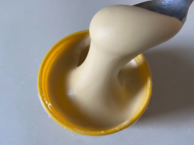 冷蔵庫から出してすぐでも固くなっておらず、スプーンを入れると粘度があってよく伸びます。常温で10分ほど置いておけば、柔らかいパンにもスムーズに塗れました♪
