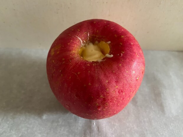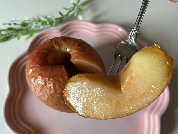 次に、焼きりんごにハニーバターを使用してみます。作り方としてはりんごの芯をくり抜き、穴にハニーバターをたっぷり入れてオーブン220℃で20分焼きます。
