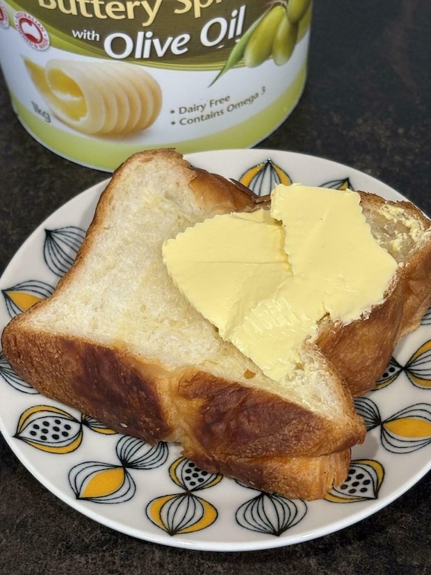 クリームのように柔らかく、冷蔵庫から出したばかりのスプレッドでも、バターナイフがスッと入りました!使い勝手が良く、忙しい朝でも重宝できるスプレッドですよ♪