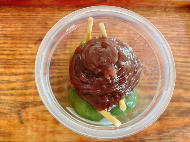 一口噛むごとによもぎの爽やかな香りが広がり、そこに粒あんの食感が加わることで、お団子との絶妙な調和を楽しめます。