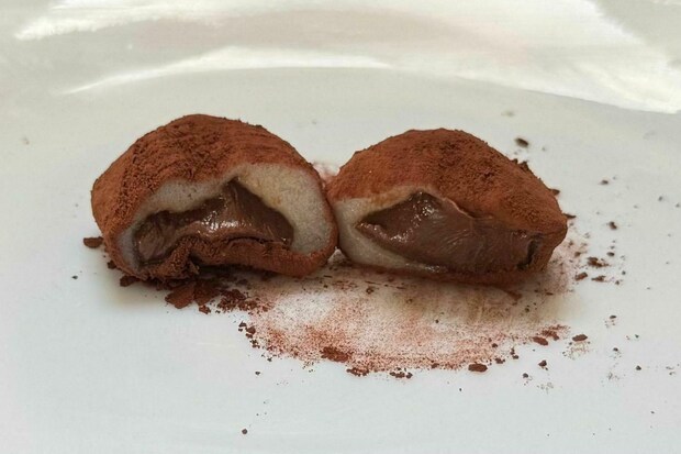 国産もち粉を使ったふんわりもちもちの雪平生地で生チョコレートを包み込み、表面にココアパウダーをまぶした食べやすいサイズの大福です。