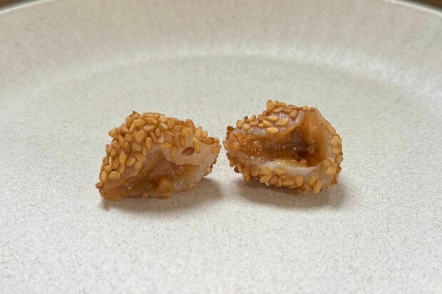 金ごまの粒感の食感と奥にあるもっちりとした団子の組み合わせが絶妙です。