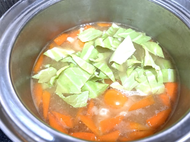 キャベツやごぼう、にんじんなどの野菜の甘味も十分出ているので、全体的にとてもやさしい味わいに仕上がりました。
