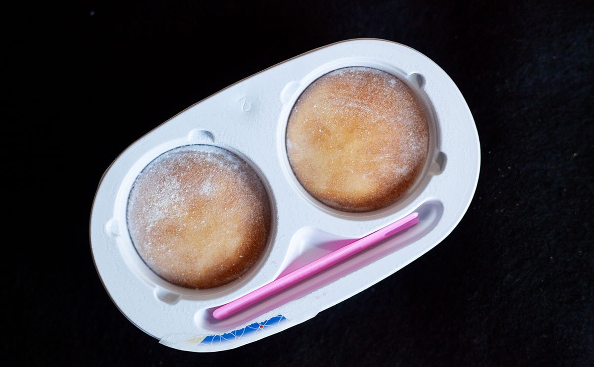 さて、気を取り直して。もち生地も茶色(?)になっていて、見た目からもきなこ感を感じ取れますね。