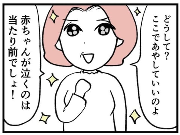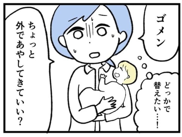 でも喜美子さんは「ここであやしていいのよ」と引き止めます。とはいえ、その場でおむつ替えをすることはできず、まゆさんは困り果ててしまいました。