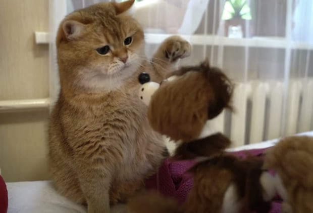 怒っていても猫パンチがとっても優しい…