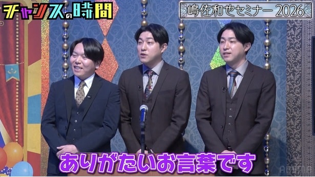 千鳥がMCを務める「チャンスの時間」(毎週日曜夜11:00、ABEMA SPECIAL)の#350が、2月22日にABEMAにて放送。5年ぶりにニューヨークが出演し、特別企画「嶋佐セミナー2026」を開催した。