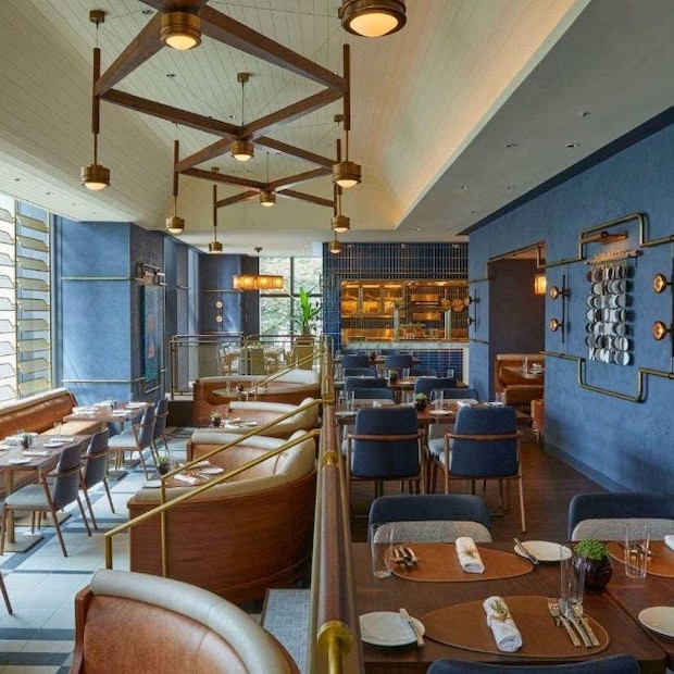 ラグジュアリーホテル「キンプトン新宿東京」内のモダンブラッスリー「ディストリクト ブラッスリー・バー・ラウンジ」。アーティスティックなアフタヌーンティーや、クリエイティブなディナーを堪能できる。ホスピタリティあふれるおもてなしに癒やされながら、非日常のひとときを。