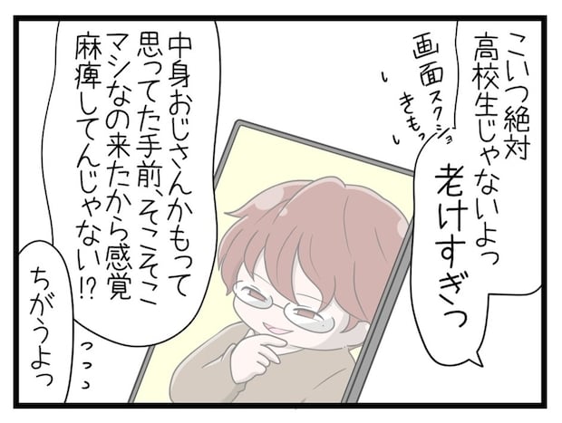 めいさんは、「かい」の姿をビデオ通話中にスクショしていました。それを姉に見せると「絶対、高校生じゃない」と言い、いろいろと忠告してきました。そんな姉をうるさく思っためいさんは、姉の言うことを聞かなくなります。一方、かいは、あるSNSの投稿を見て何か思っているようです…。