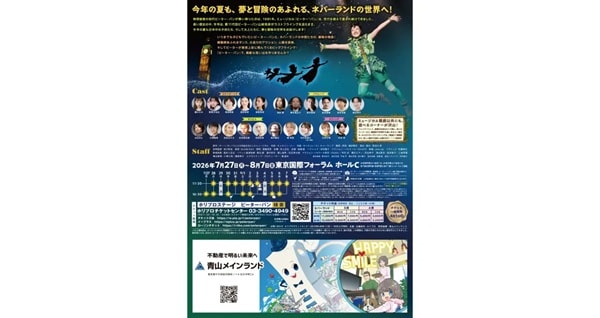 ブロードウェイミュージカル『ピーター・パン』は1981年の日本初演以来、子どもから大人まで幅広い世代に親しまれ、夏休みの劇場体験としても長年愛されてきたファミリーミュージカルだ。青山メインランドは同公演への特別協賛を通じ、家族で楽しめる舞台体験の機会創出を応援する。