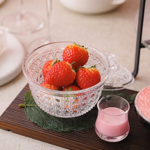 スイーツに加えて、大粒のフレッシュいちご「とちあいか」もラインナップ。濃厚な味わいと甘みが自慢の「とちあいか」を特製の桜練乳とともに召し上がれ。