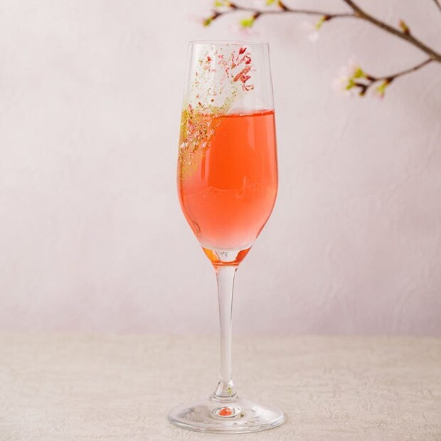 期間限定でオリジナルカクテル「花筏」も登場。ジンをベースにクランベリージュースを合わせ、エルダーフラワーで春らしい風味をプラス。ノンアルコールも用意されているので、好みやシーンに合わせて選べるのがうれしい。食前にも食後にも合う、この季節ならではの1杯をぜひ味わってみて。
