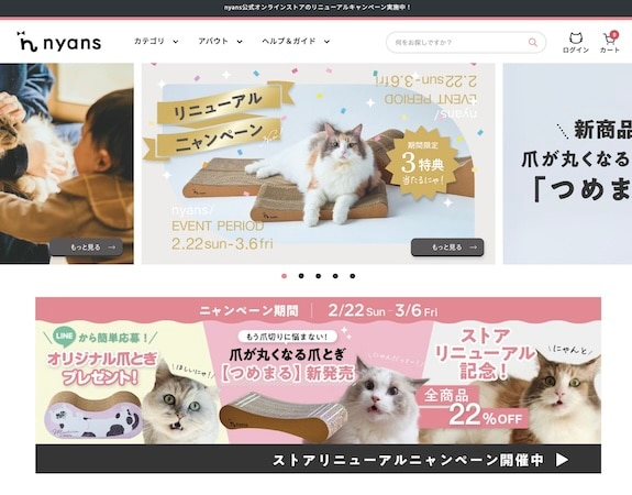 今回nyans公式オンラインストアは、猫の生態から逆算したものづくりの背景や、素材へのこだわりを丁寧に伝える場所としてリニューアル。「猫を中心に考える」というnyansの哲学を、商品だけでなく買い物の体験そのものに反映したいという想いからオンラインストアを一新した。