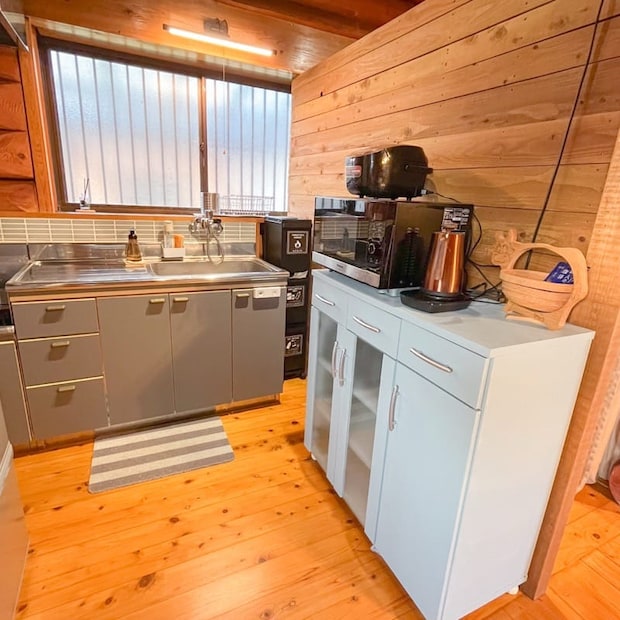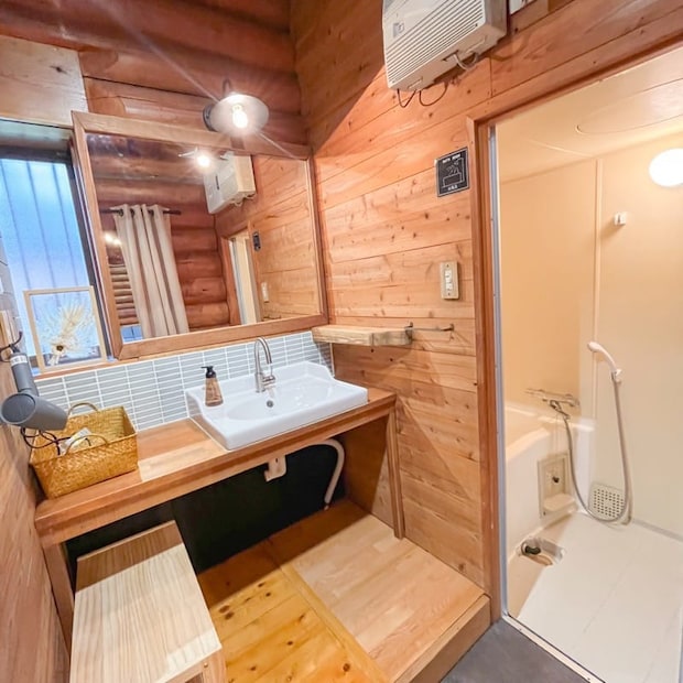 オーナーさんのお父さんが建てた築30年のログハウスを、約3年かけてセルフリノベーションしたんだそう!