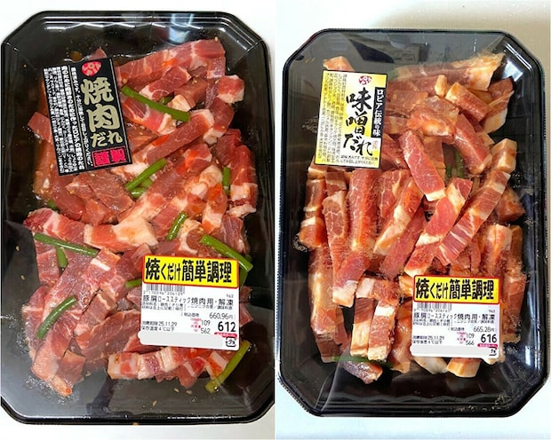 この「豚肩ローススティック焼肉用」は味の種類がいくつかあり、3~4種類売り場に並んでいることもあります。
