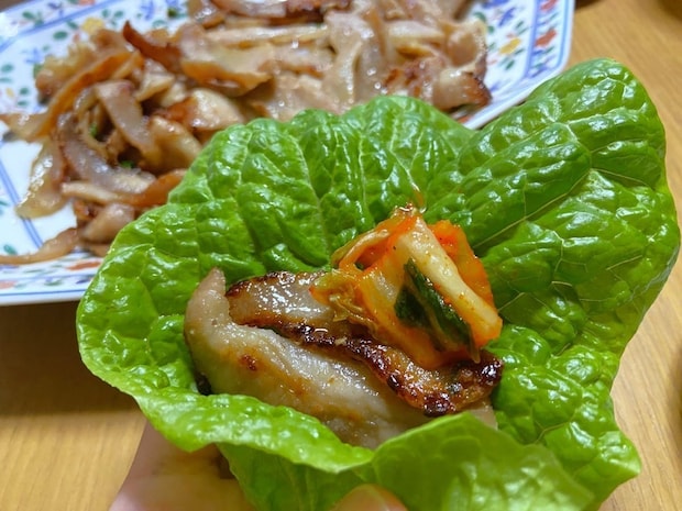 ホットプレートを囲んで、サンチュやレタスに包んで食べるのがおすすめ。家族や友だちとわいわい楽しんでください。