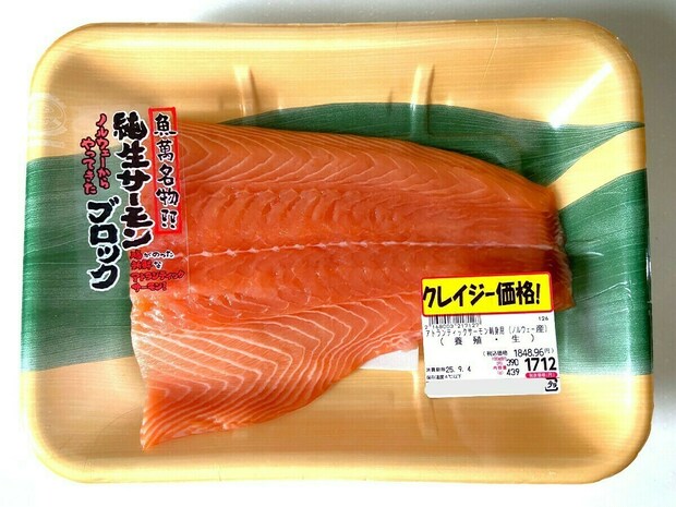 近年、価格の高騰が激しいアトランティックサーモンですが、ロピアでは、他のスーパーに比べると価格は抑えめ。