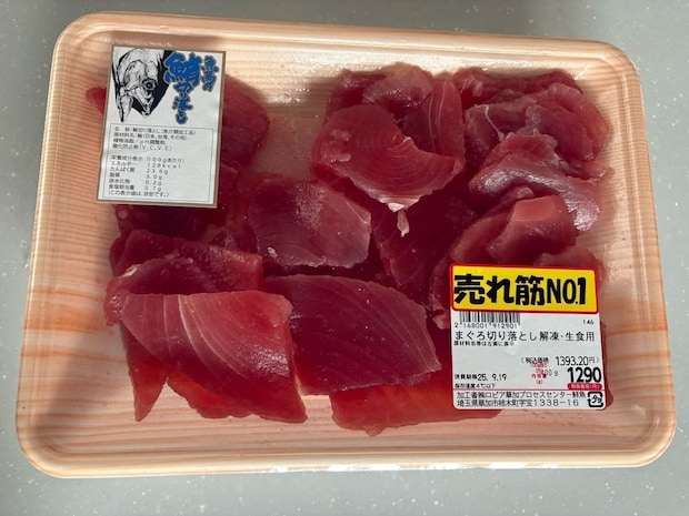 人気の刺身でこちらも外せないまぐろ。中でも人気なのが「売れ筋NO.1」と記載がある「まぐろの切り落とし」です。