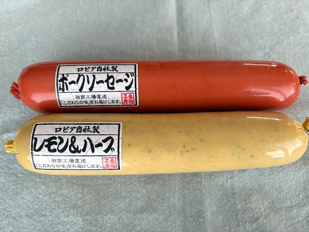 「ポークソーセージ」「レモン&ハーブ」の2種類のボロニアソーセージ。