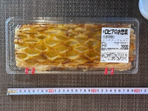 とにかくながーいロピアのアップルパイは全長約30cm。りんごは5個分入っているそうです。