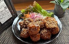 大きさは1個がこぶし大くらいあり、甘辛いたれがたっぷりとかかっています。