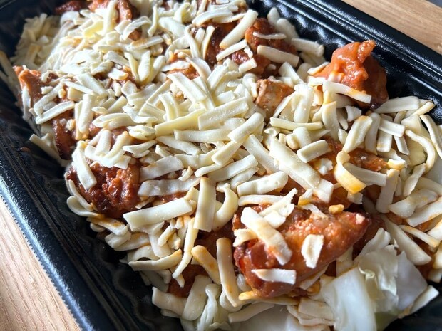 鶏むねに加え、大豆ミートなどの「粒状植物性たん白」が使用されているので、思った以上に淡白な味わいです。