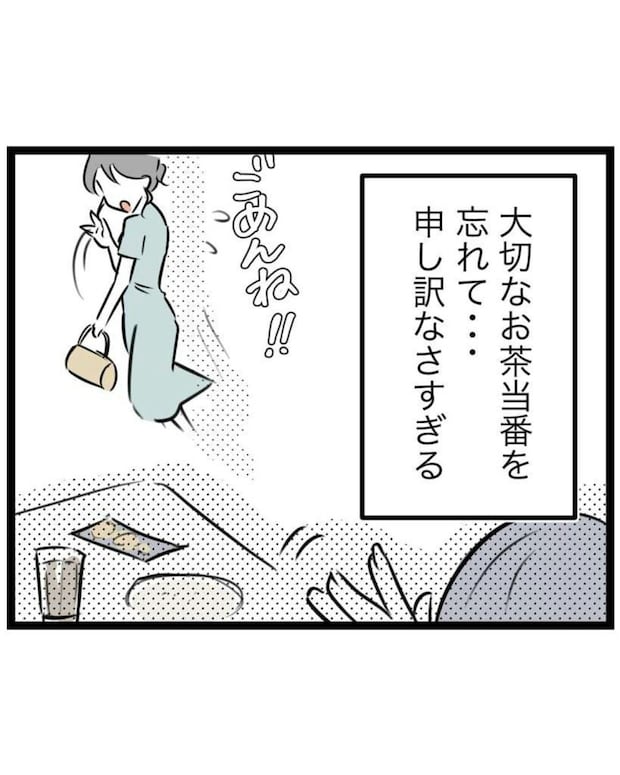 お茶当番を忘れていたもっつんさんに、チームからは怒りの電話が。電話は一方的に切られ、もっつんさんは茫然としてしまいます。
