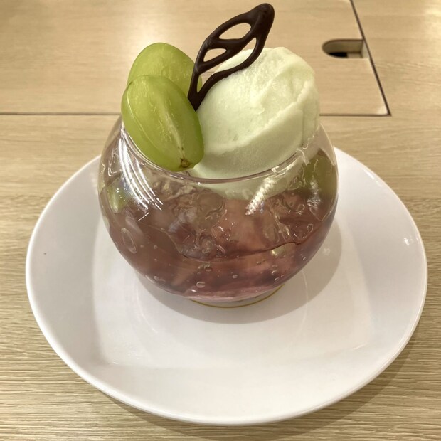 “専門店以上のスイーツ”を目指す「KURA ROYAL」より、見た目も華やかな新作パフェが登場。球体カップとリーフ型のチョコで果実のような見た目に仕上げ、シャインマスカットとマスカットシャーベット、巨峰のソース、ぶどうクリーム、白ぶどうゼリーを使用。ゼリーの中にもシャインマスカットを入れるなど、果実感にこだわり、サクサクのクランブルクッキーと合わせて食感の変化も楽しめる。