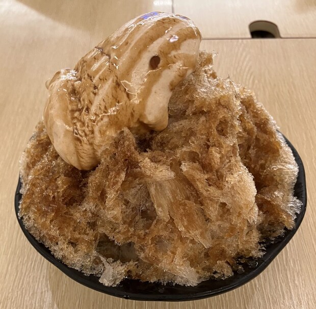 天然水を長時間かけて冷やすことでできるかき氷専用の氷「夢のふわ雪」を使用し、ふわふわとした雪のような口どけが特徴。黒蜜ときな粉で、甘さと香ばしさのバランスがとれた和のかき氷。