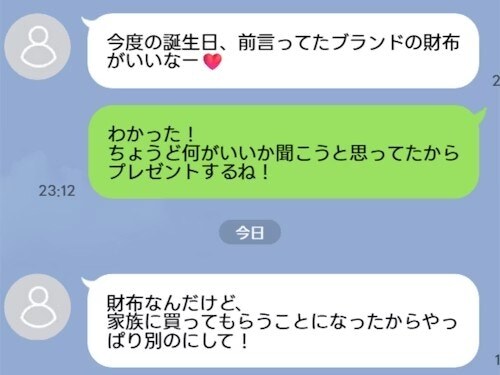 「財布、もう買ったんだけど…」友人の“プレゼント変更LINE”に絶句