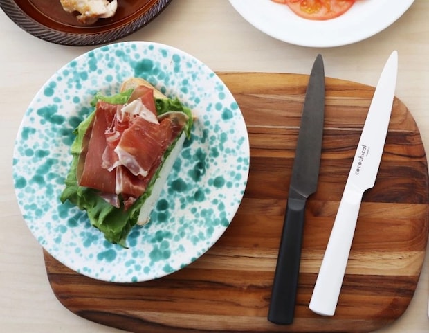 ふんわりした生ハムとフリルレタスと厚切り食パンのオープンサンドも、エアリーカットでふわっとした切れ味が実現! 12.5cmのコンパクトスリムサイズだから、サッと使えて便利です。