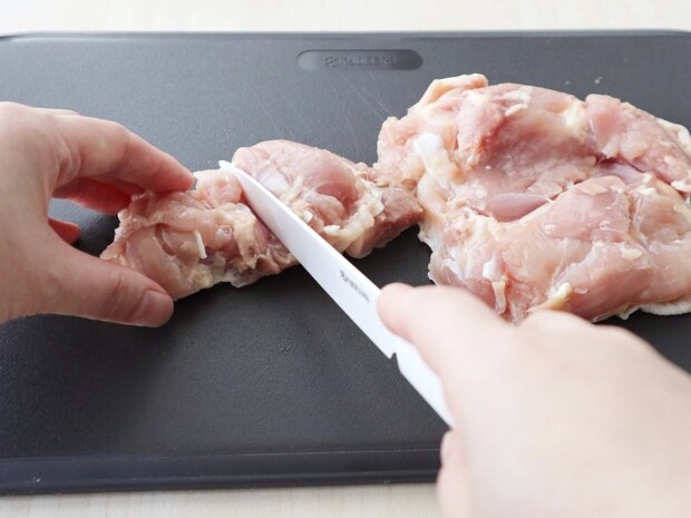 包丁は料理の始まりの道具。始まりが上手くいくと調理全体も上手くいく…そんな気持ちになれます!プニプニした鶏肉もエアリーカットで整った断面に。唐揚げの下ごしらえもスピーディーです。