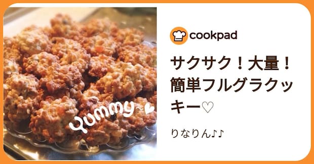 ▼型抜き不要!材料を混ぜて焼くだけザクザク食感がたまらない!チョコやドライフルーツを追加するのもおすすめです。