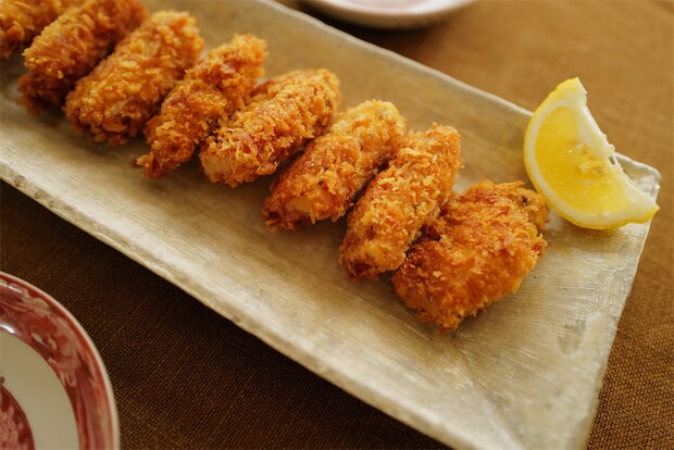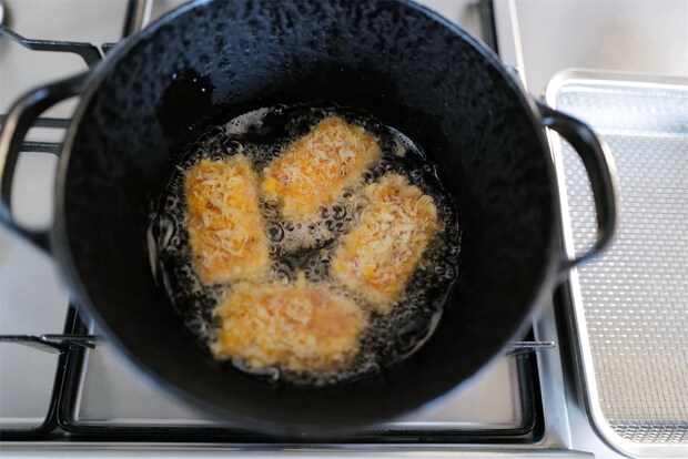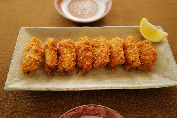 4. 170℃に熱した油でからりときつね色になるまで揚げる。油を切り、お皿に盛って完成。