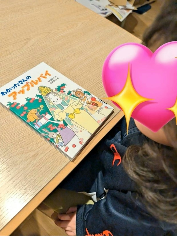娘さんが借りてきたのは『わかったさんのアップルパイ』。かわいらしい絵柄と料理が楽しくなる内容で、たくさんの親子から愛され続けています。お写真を見て「あ~読んでた!懐かしい」と、思わず言葉がこぼれました。