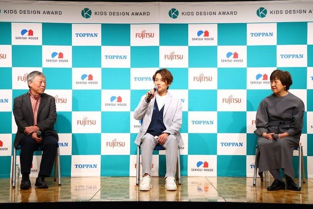 記者会見では、キッズデザイン賞審査委員長の山中敏正さん、米谷統括編集長、そしてゲストの俳優の杉浦太陽さんによるトークセッションが行われました。
