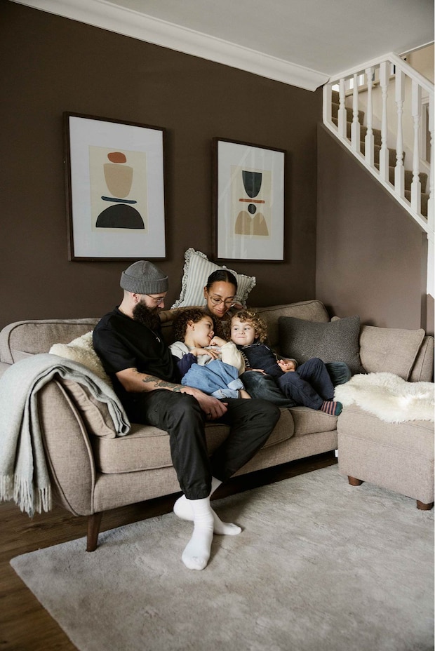 ロンドン郊外の街、ベンフリートで生まれ育ったジョーさんとローラさん。結婚を機に、もともとローラさんの父親が住んでいたというこちらの家を2020年に購入、リノベーションをした。インテリアまわりはすべてローラさんの担当だそうで、「小さな頃から、家具屋さんに通ってデザインを想像するのが趣味だった」というインテリア愛を、夫のジョーさんは全面的にサポートしている。「購入した時点では“お年寄りの家”という感じが強かったので、真っ先にカーペットからフローリングに変え、家中のペンキを塗るところからスタート。子どもたちがお腹にいる中でのDIYはとても大変でしたが、時間をかけて楽しみながら作業しました」。そんなローラさんのアイディアにより、ペンキの色を変えて部屋ごとの雰囲気の違いを楽しみながらも、カラーはアーストーンで統一し、家全体の調和を保つことに成功している。