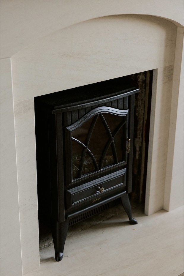 イギリスの古い家に必ずついているという暖炉はつぶし、空いたスペースにはより安全で扱いやすい薪ストーブを設置。