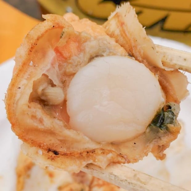 黄金色の焼き目が眩しいホタテは、貝ひもの香ばしさと貝柱の歯ごたえとのコントラストが絶妙。