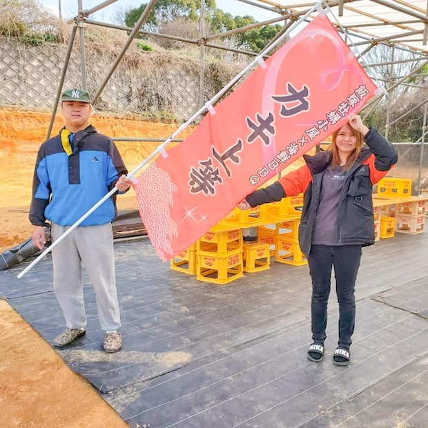 飯塚市綱分、のどかな風景が広がる一角に今年1月中旬オープンした「飯塚牡蠣小屋×海鮮BBQ専門店 カキ上等」を訪れました。