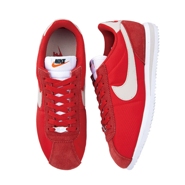 トレンドの赤を足元で取り入れてワンポイントに。名品コルテッツが今また熱い。スニーカー〈コルテッツ〉¥12,430(ナイキ スポーツウェア/NIKE カスタマーサービス)