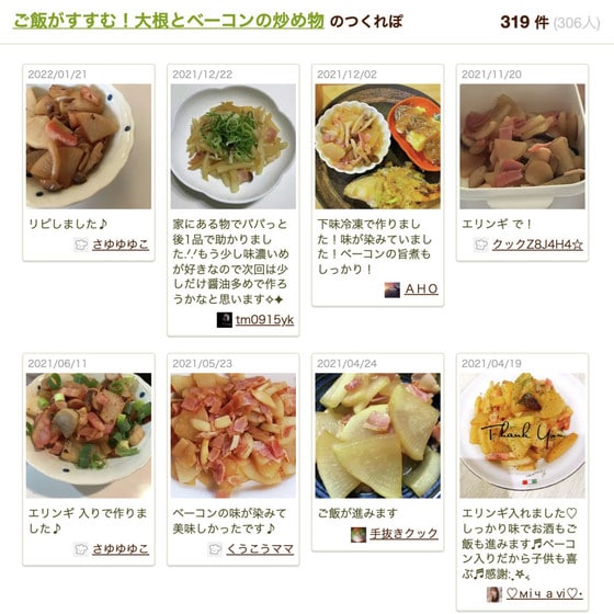 つくれぽ(つくりましたフォトレポートのこと)にも、「調味料の分量も覚えやすく、大根に味が染みて美味でした~リピ決定!」「簡単でいい! ベーコンの旨みが出ていて、あっさり大根もコクが出ますね」など、レシピの「簡単なのに大根に味が染みておいしい」と絶賛する声がたくさん届いています。