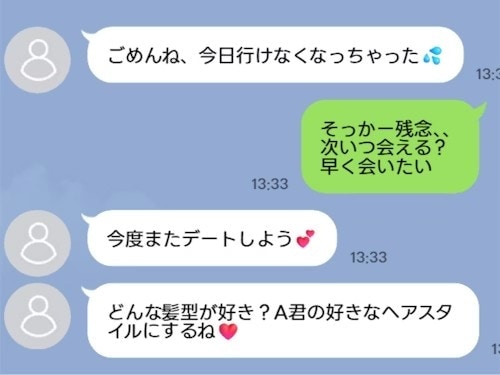 キャバ嬢の方はお客さんとして接していると思うのですが、『今度デートしようね』とか『どんな髪型が好き?〇〇君の好きなヘアスタイルにするね❤️』とか送っていました。