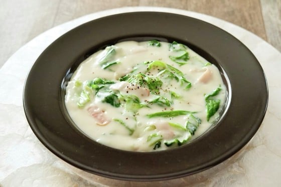 とろみのついたミルクスープに、レタスがたっぷり入っておいしそう!
