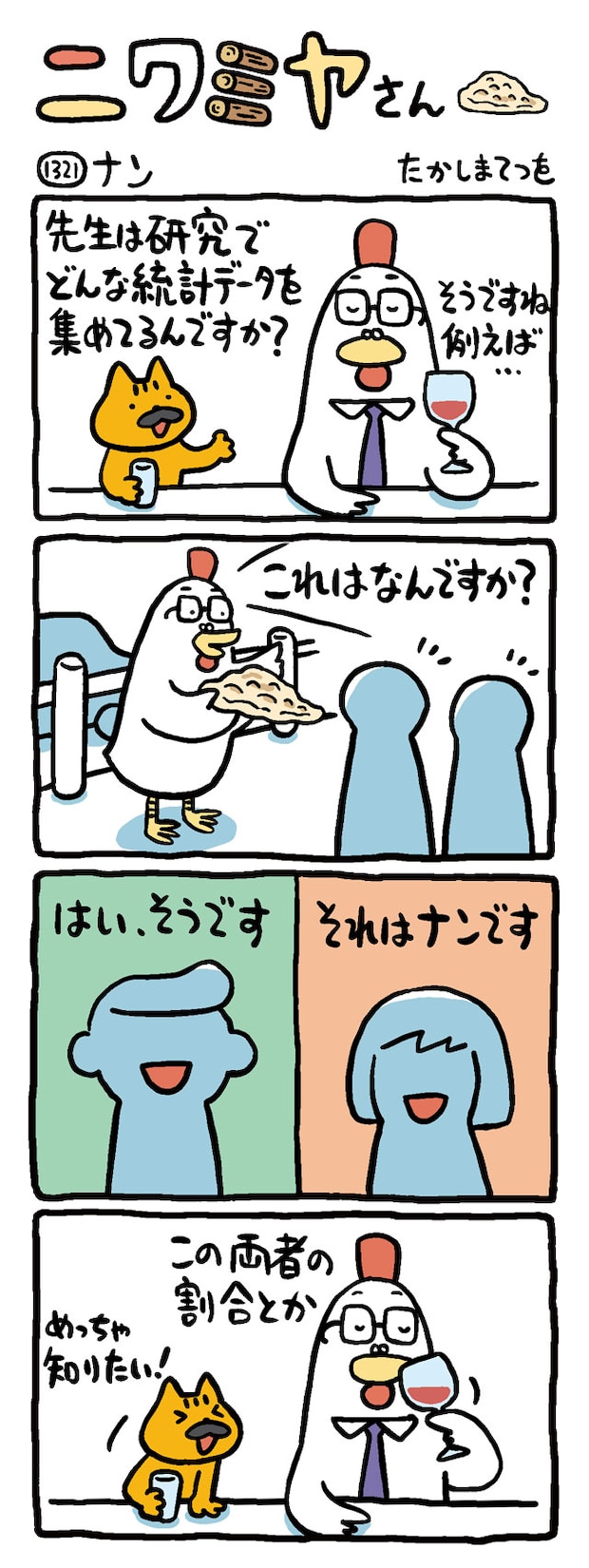 インドカレー店でメニューにチーズナンを見つけて注文しました。ぼくの頭にあったのは、あの巨大な羽のような形のナンの生地がチーズ味になっているもの。でも運ばれてきたのは、とろとろのチーズを挟んだ円形のナンがピザのように切り分けられたものでした。「ここのチーズナンって変わってますね」と口にすると、同席者たちは声を揃えて「チーズナンと言えばこれでしょう」と言います。 えっ、そうなんですか!? これはこれで美味しいけど、じゃあ羽みたいなチーズナンのぼくの記憶は一体どこから来たんだろうと不思議になりました。帰り道にふと見上げた夜空に、あのピザ状のチーズナンみたいな黄色い月がぼんやり光っていました。単なる無知と勘違いを、マンデラ効果なのではと疑うぼくを笑っているかのように<´ `