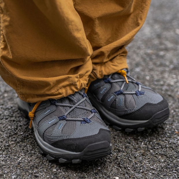 『エルエルビーン』のシューズで、アウトドアMIXコーデを加速! コーデから拾ったグレーカラーでバランスよく。
