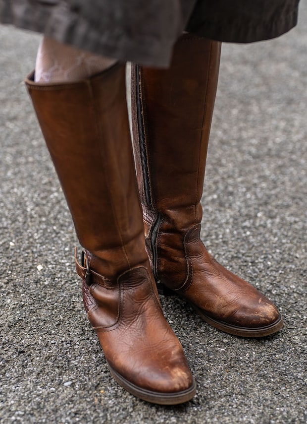 足元は味のあるブラウンのロングブーツをオン。ヴィンテージならではの風合いが冬のアースカラーコーデに映える。